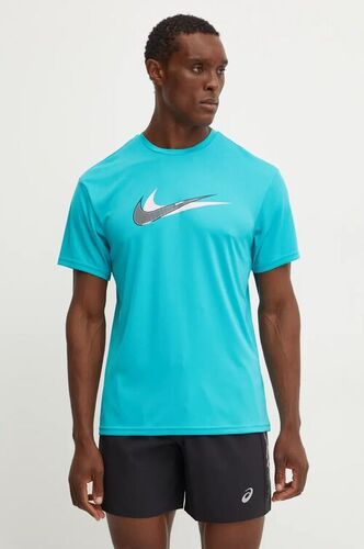 Nike t-shirt sportowy Stacked Swoosh kolor turkusowy z nadrukiem NESSE512