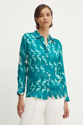 La Petite Française koszula CHANDELLE damska kolor turkusowy regular z kołnierzykiem klasycznym