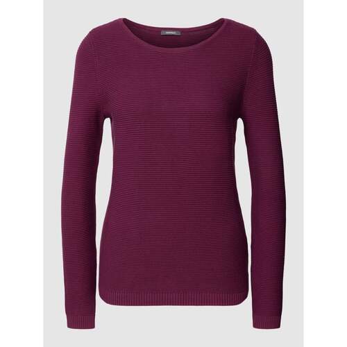 Sweter z dzianiny z prążkowanym, okrągłym dekoltem