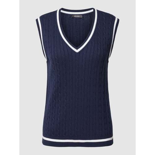 Sweter z dzianiny z prążkowanym, okrągłym dekoltem