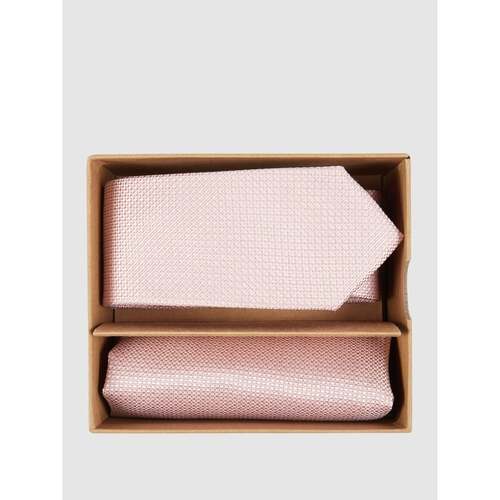 Krawat i poszetka ze wzorem na całej powierzchni różowa mucha do garnituru w zestawie model ‘Loy’
