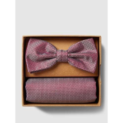 Mucha i poszetka z tkanym wzorem w zestawie różowa mucha do garnituru