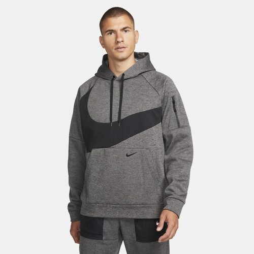 Męska bluza z kapturem do bluza nike bordowa meska fitnessu Nike Therma-FIT - Szary