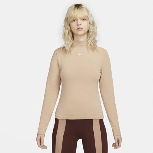 Damska koszulka z długim rękawem i półgolfem Nike Sportswear Collection Essentials - Brązowy