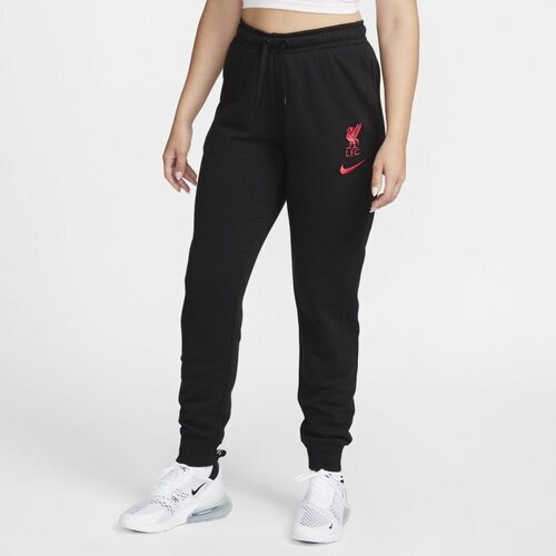 Damskie spodnie ze średnim stanem Liverpool F.C. Club Fleece - Czerń czarne nike buty