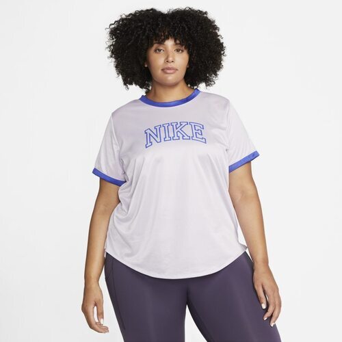 Damska koszulka do biegania z krótkim rękawem Nike Dri-FIT Swoosh (duże rozmiary) - Fiolet