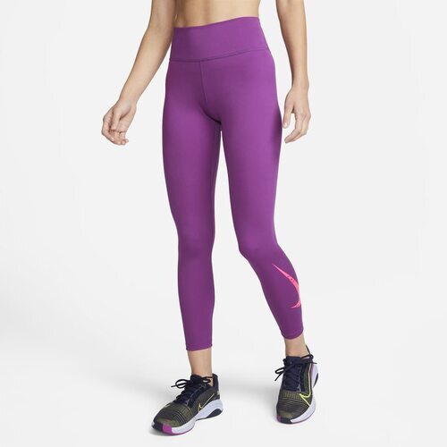 Damskie legginsy treningowe o długości 7/8 ze średnim stanem i grafiką Nike One - Fiolet