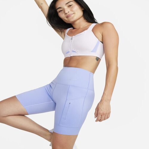 Damskie spodenki do jazdy na rowerze z wysokim stanem i kieszeniami zapewniające wysokie wsparcie 20 cm Nike Go - Fiolet