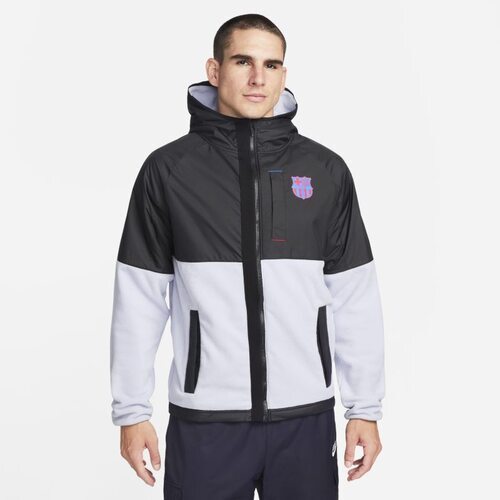 Męska kurtka piłkarska na zimę z zamkiem na całej długości FC Barcelona AWF - Czerń