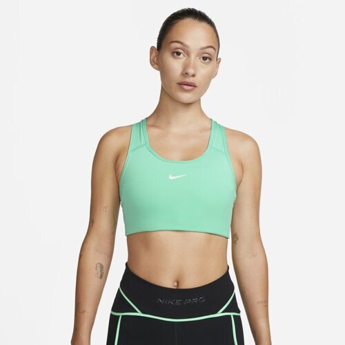 Damski stanik sportowy z jednoczęściową wkładką zapewniający średnie zielone nike wsparcie Nike Swoosh - Zieleń