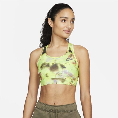 Damski stanik sportowy z nadrukiem, miękkimi miseczkami i średnim wsparciem Nike Air zielone nike Swoosh - Zieleń