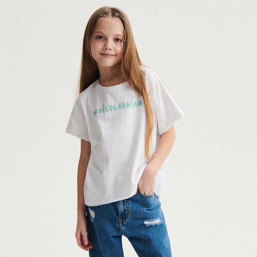Reserved - Bawełniany t-shirt z modne ubranka dla dziewczynek nadrukiem - Biały