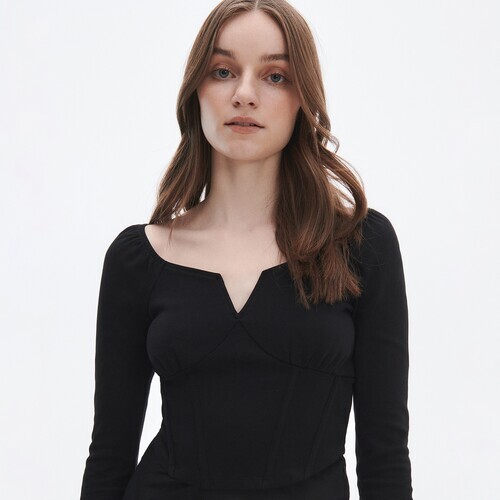 Reserved - Crop top z prążkowanej moda dziewczęca dzianiny - Czarny