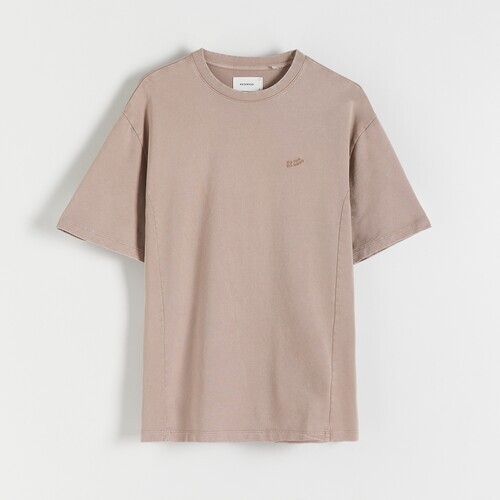 Reserved - T-shirt oversize z haftem - Beżowy modne ciuchy dla dziewczynek