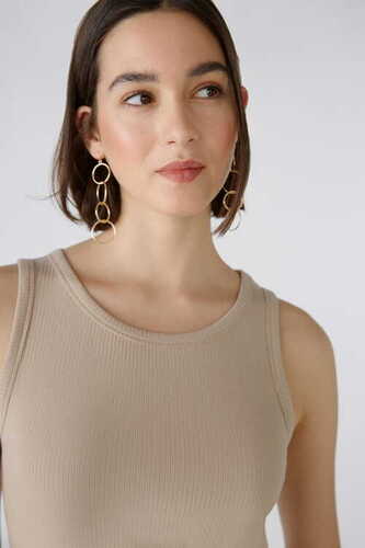 CAMELOWY PRĄŻKOWANY TOP oui Z WISKOZY OUI