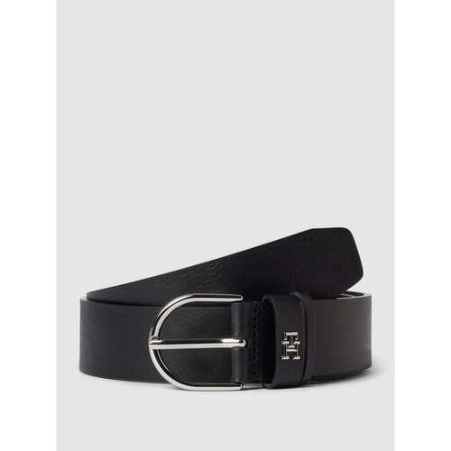 Pasek z czarny pasek skórzany aplikacją z logo model ‘TIMELESS’