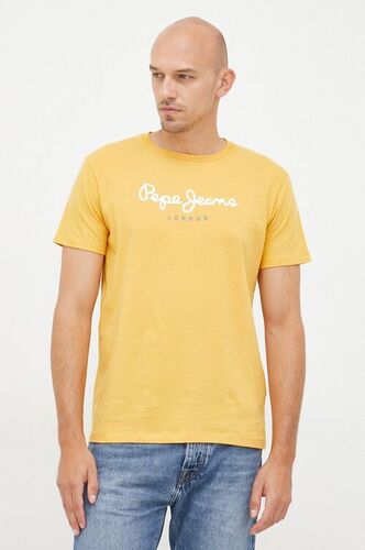 Pepe Jeans t-shirt bawełniany kolor żółty z nadrukiem