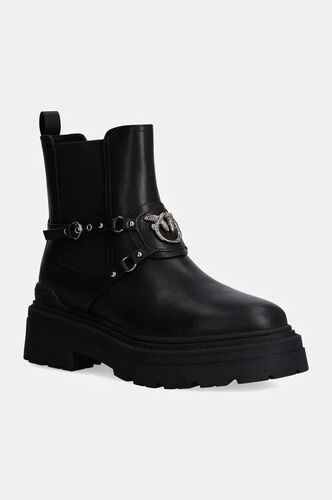 Pinko botki skórzane Prezzemolo damskie kolor czarny na platformie