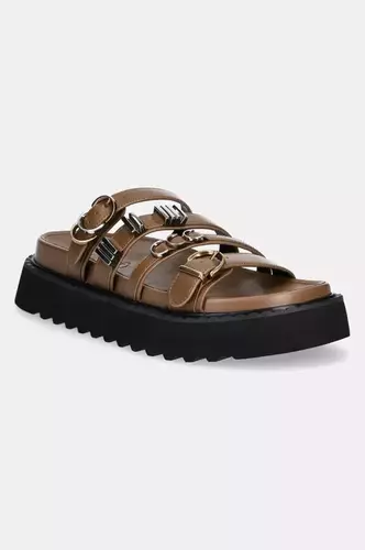 Pinko klapki skórzane Kate damskie kolor brązowy na platformie SD0291 P001 GU8