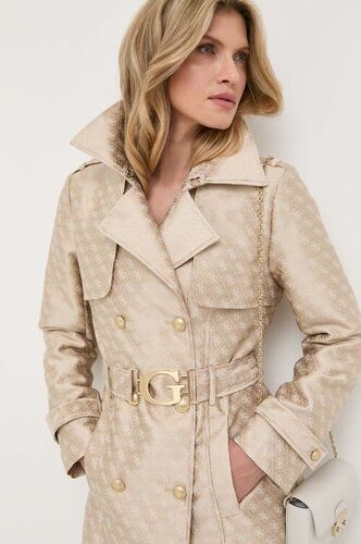 Guess płaszcz damski kolor beżowy przejściowy dwurzędowy