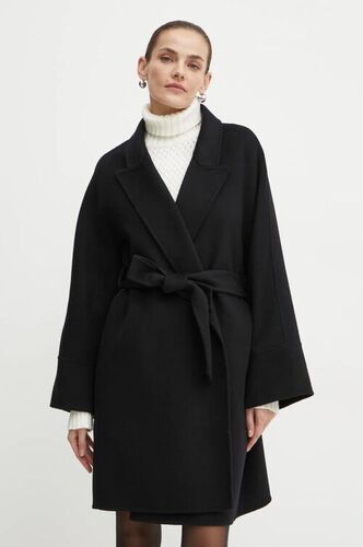 Weekend Max Mara płaszcz wełniany kolor czarny przejściowy dwurzędowy 2425016052600