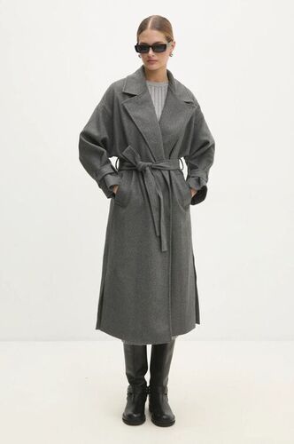 Answear Lab płaszcz z wełną kolor szary przejściowy oversize