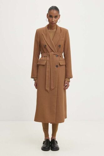 Answear Lab płaszcz damski kolor brązowy przejściowy dwurzędowy