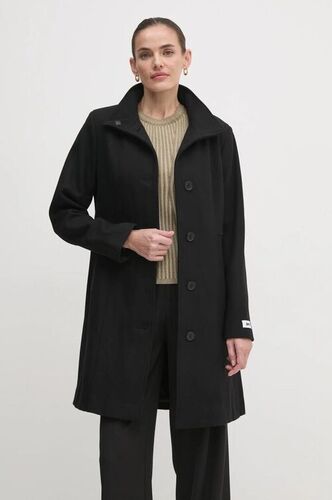 Dkny płaszcz wełniany kolor czarny przejściowy DLEMW021