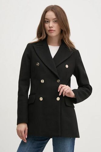 Silvian Heach płaszcz z domieszką wełny MEZYS kolor czarny przejściowy dwurzędowy CVA24001CP