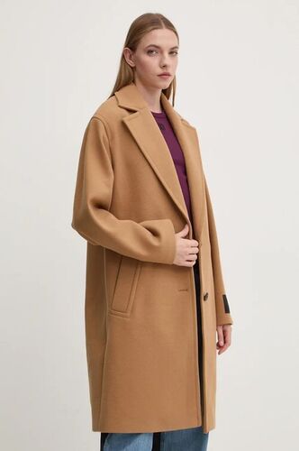 HUGO płaszcz z domieszką wełny kolor beżowy przejściowy 50534328