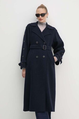 2NDDAY płaszcz wełniany Livia kolor granatowy przejściowy dwurzędowy
