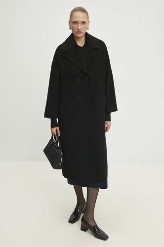 Answear Lab płaszcz damski kolor czarny przejściowy dwurzędowy