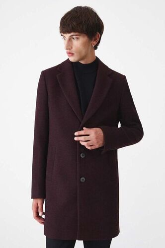 Medicine płaszcz z domieszką wełny męski kolor bordowy przejściowy