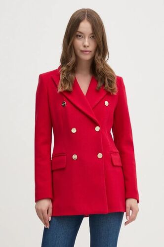 Medicine płaszcz wełniany damski kolor czerwony przejściowy