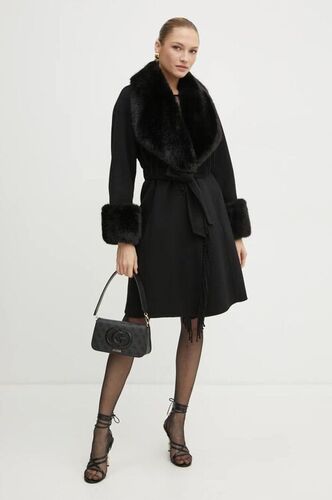 Morgan płaszcz wełniany GOUMI kolor czarny przejściowy dwurzędowy GOUMI