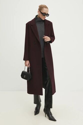 Answear Lab płaszcz damski kolor bordowy przejściowy dwurzędowy