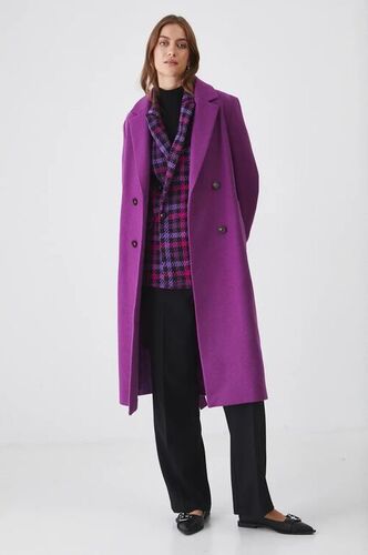 Medicine płaszcz wełniany damski kolor fioletowy przejściowy dwurzędowy