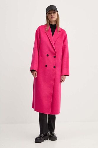 Desigual płaszcz 23WWEWAD WOMAN WOVEN OVERCOAT damski kolor różowy przejściowy dwurzędowy