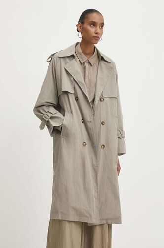 Answear Lab trencz damski kolor zielony przejściowy dwurzędowy