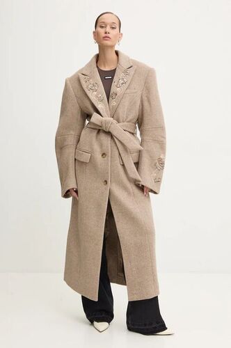 Ivy Oak płaszcz wełniany kolor beżowy przejściowy dwurzędowy IO119100