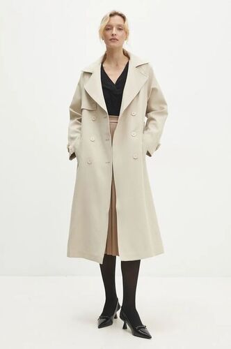 Answear Lab płaszcz damski kolor beżowy przejściowy dwurzędowy