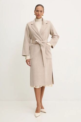Won Hundred płaszcz wełniany kolor beżowy przejściowy 3319-13050