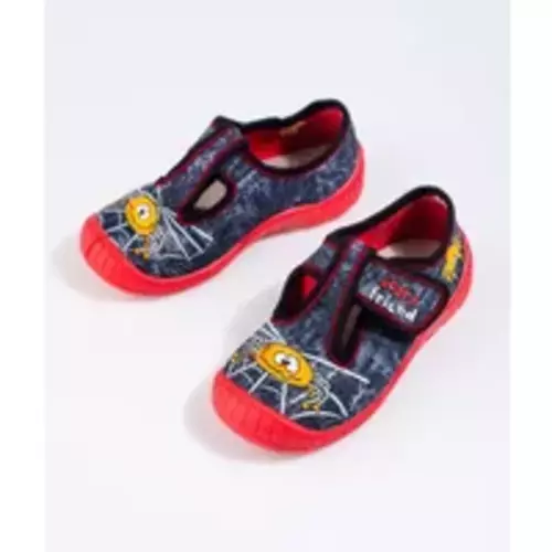 Czarno-czerwone kapcie na półbuty dziecięce rzep pająk