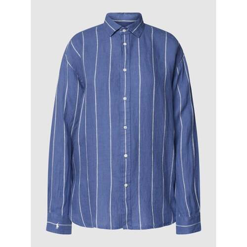 Bluzka koszulowa z lnu z wzorem w paski