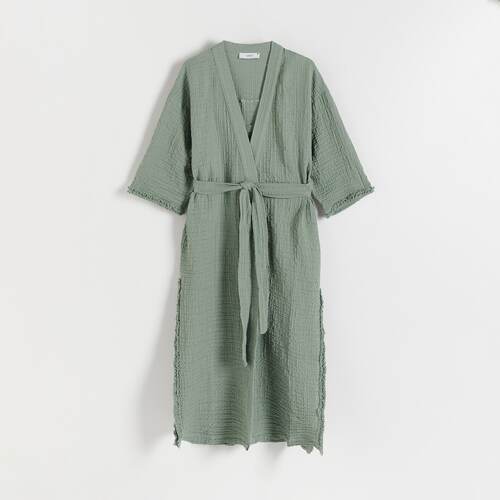Reserved - Muślinowe ponczo jesienne damskie kimono - Zielony