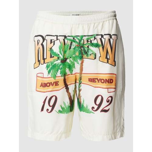 Szorty z wiskozy ze wzorem review na całej powierzchni