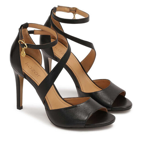 Sandały na obcasie czarny sandały skórzane płaskie - 36