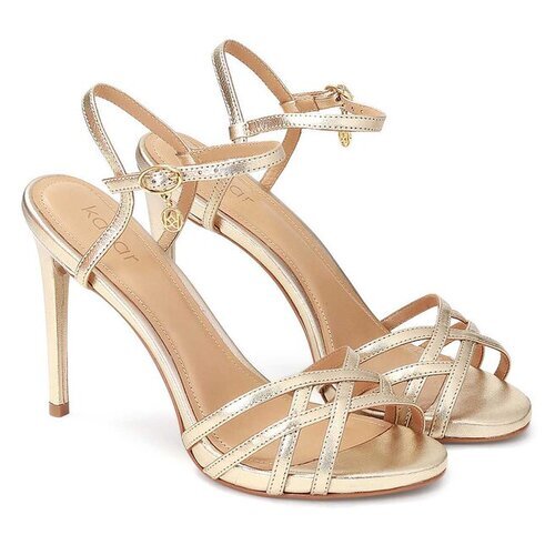Sandały na obcasie sandały skórzane płaskie złoto - 38