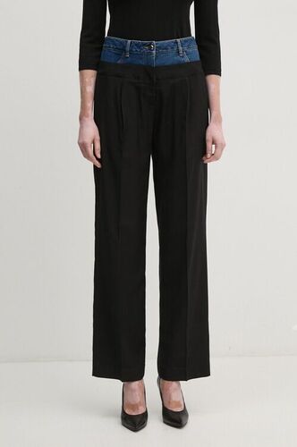 Sisley spodnie damskie sisley kosmetyki kolor czarny szerokie high waist 485XLF05M
