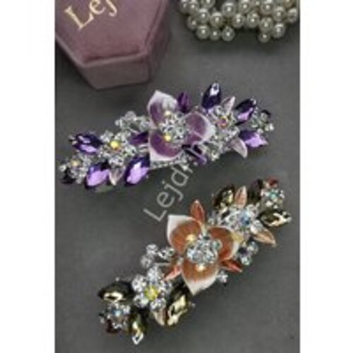 Fioletowa spinka z kryształowym kwiatem spinki do włosów eleganckie
